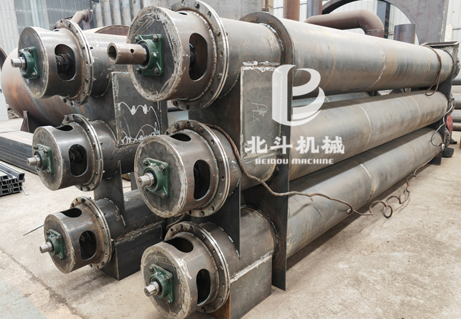 冷炭出料機(jī)可以達(dá)到冷卻物料的目的,同時(shí)減少占用空間。水冷內(nèi)螺旋輸送機(jī)包括進(jìn)料單元、出料單元、筒體、冷卻單元、驅(qū)動(dòng)單元和支撐單元,進(jìn)料單元和出料單元分別設(shè)置于所述筒體的兩端,驅(qū)動(dòng)單元使筒體圍繞其中心對(duì)稱(chēng)軸回轉(zhuǎn),支撐單元支撐筒體,所述筒體包括外筒體和內(nèi)筒體,靠近進(jìn)料單元的外筒體外周設(shè)置有一定長(zhǎng)度的夾套,冷卻套筒從一端進(jìn)水,從另一端排水,水和炭不接觸,提高了炭的品質(zhì),具有更好的冷炭效率,從而將成品炭的溫度降至常溫。